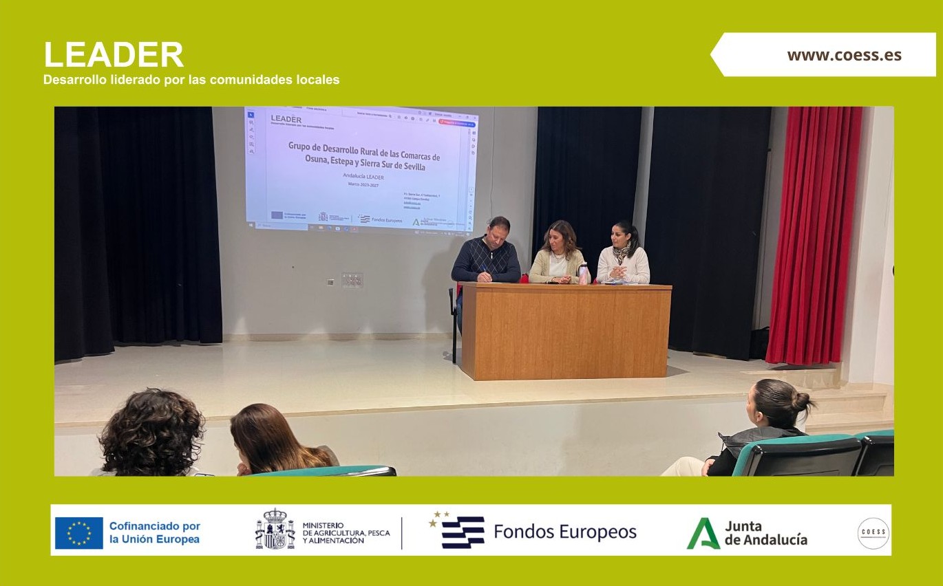 El equipo técnico de Grupo de Desarrollo Rural de las Comarcas de Osuna, Estepa y Sierra Sur de Sevilla ha llevado a cabo una nueva ronda de jornadas informativas sobre la Estrategia de Desarrollo Local LEADER 2023‑2027 (EDLL) en varias localidades de nuestra zona durante las últimas semanas, con notable asistencia de público.